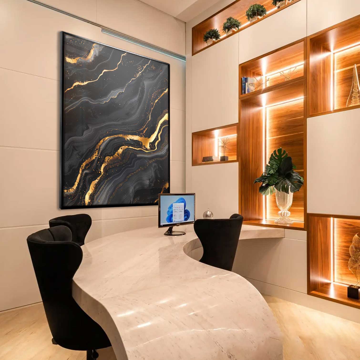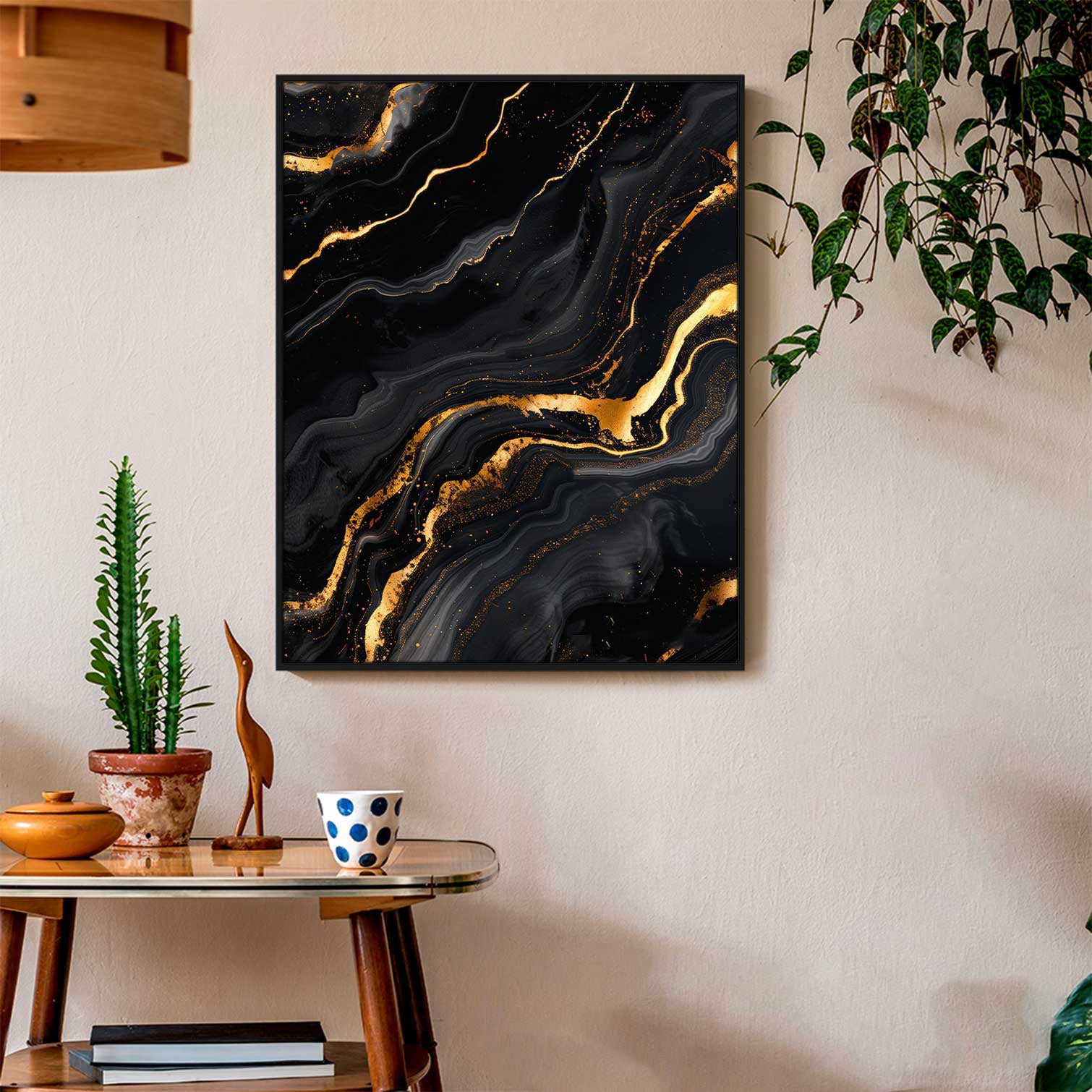 Elevate your space with this dramatic black and gold marble canvas. Bold metallic veins flow through inky black textures, creating a rich, luxurious statement. A perfect fusion of modern elegance and timeless allure for any high-end interior.