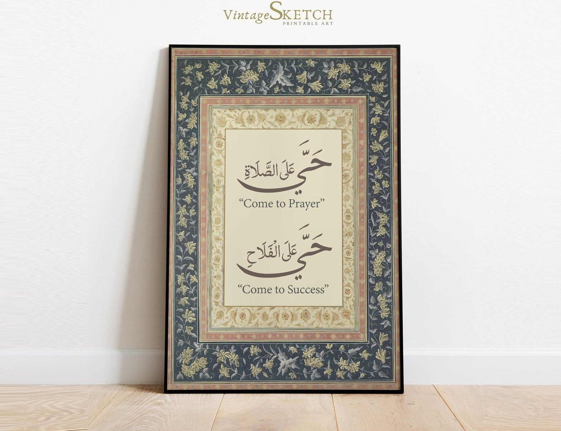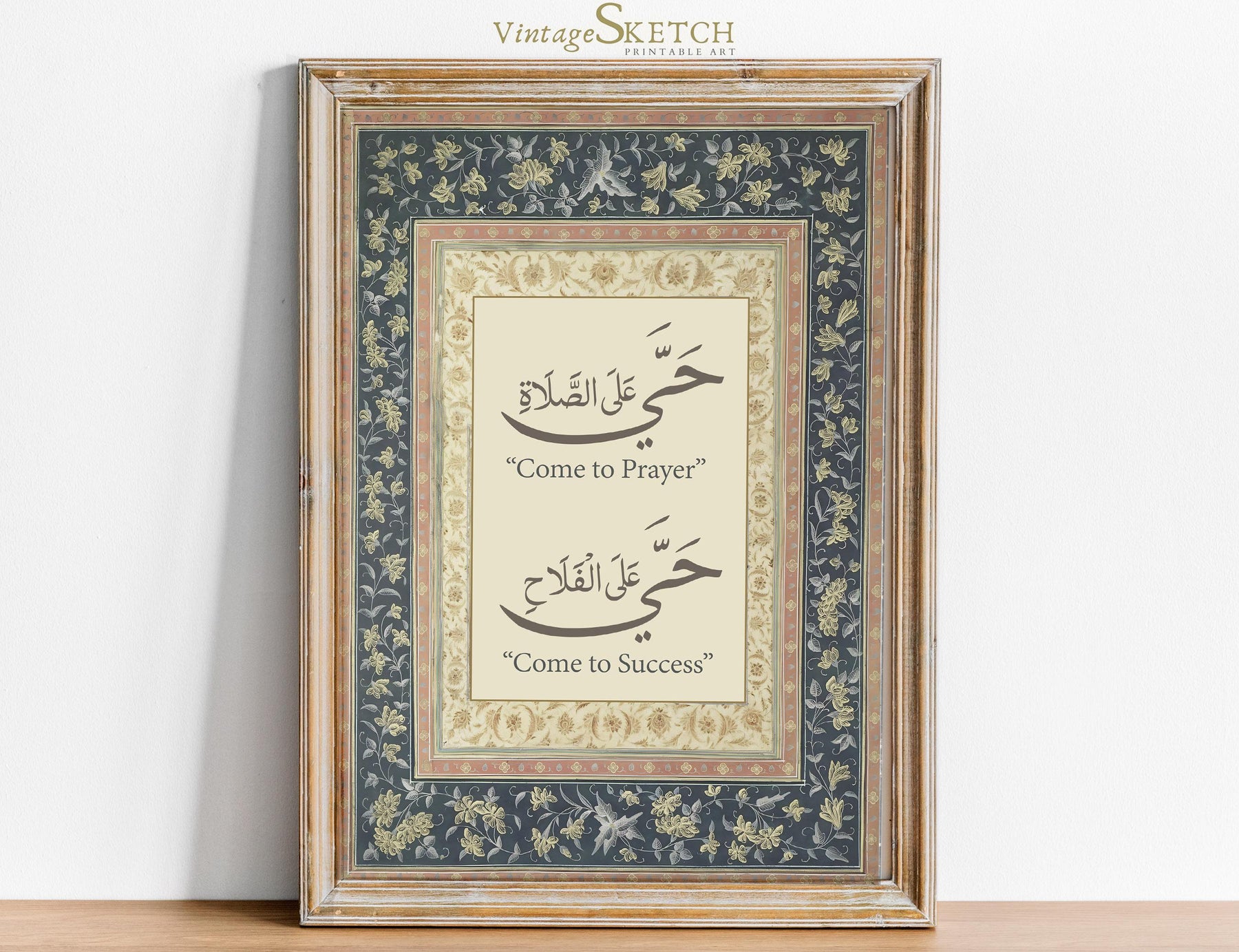 Hayya Alal Salah Wall Art - Adhan Calligraphy, Vintage Islamic Decor