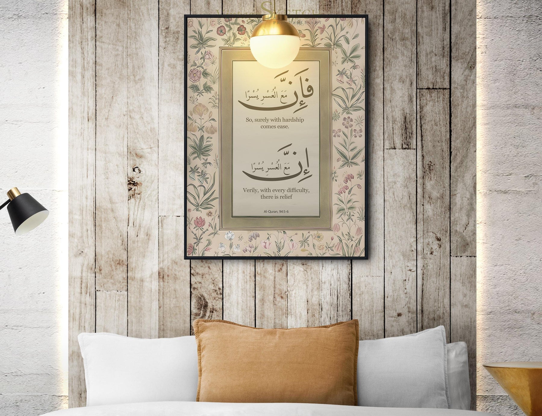 Muslim gifts wall art celebrating Surah Ash-Sharh and resilience