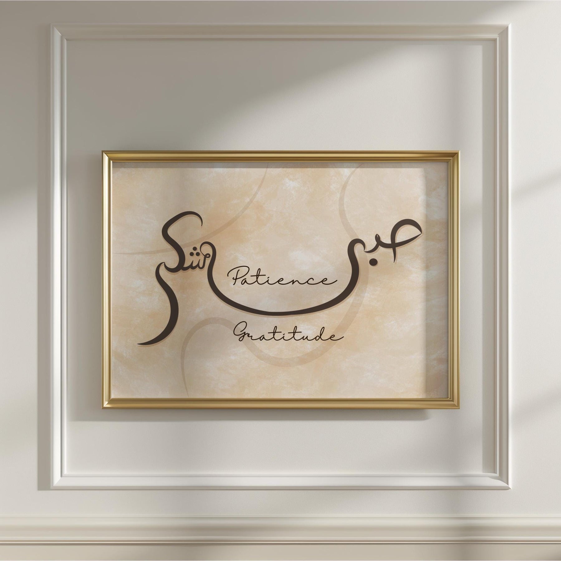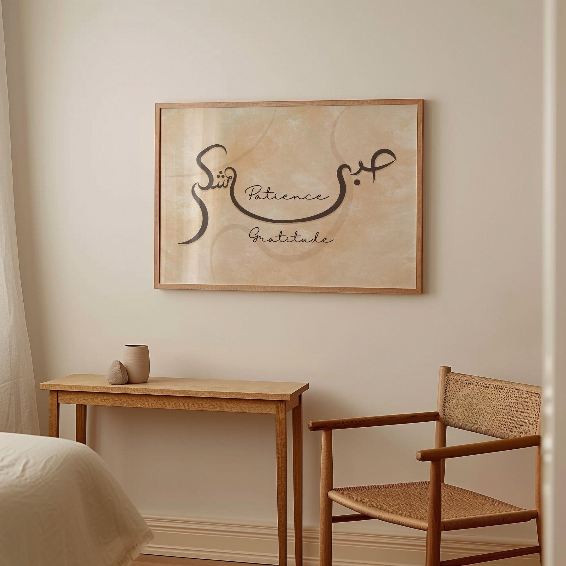Islamic Wall Art Sabr & Shukr Calligraphy Decor | Modern Muslim Home