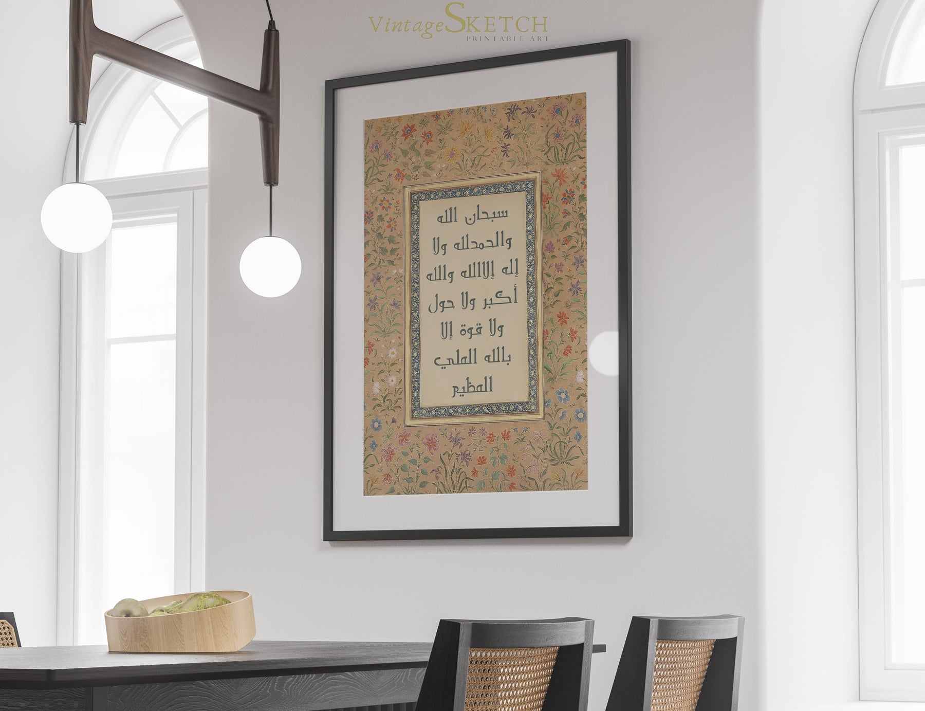 Kalima Wall Art presents a modern Islamic calligraphy design that honors timeless Kalima while blending with contemporary interiors. Printed on premium archival art paper with fade-resistant inks, this piece delivers rich color and crisp detail. It is designed to be framed and hung in living rooms, bedrooms, or offices; multiple sizes are available to fit standard frames. A refined gift for weddings, anniversaries, or housewarmings, this artwork belongs to the Vintage Islamic collection, pairing heritage with sophisticated décor.
