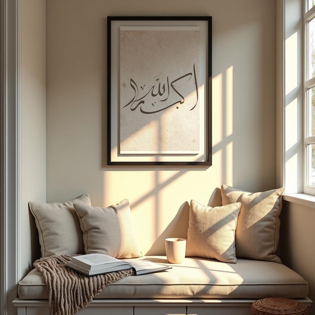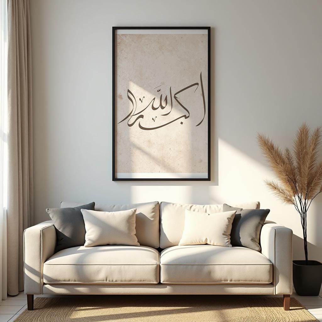 Elevate your space with this Islamic calligraphy wall art set of three. Coordinated prints in a warm beige palette bring a calm, minimalist presence to any room.
