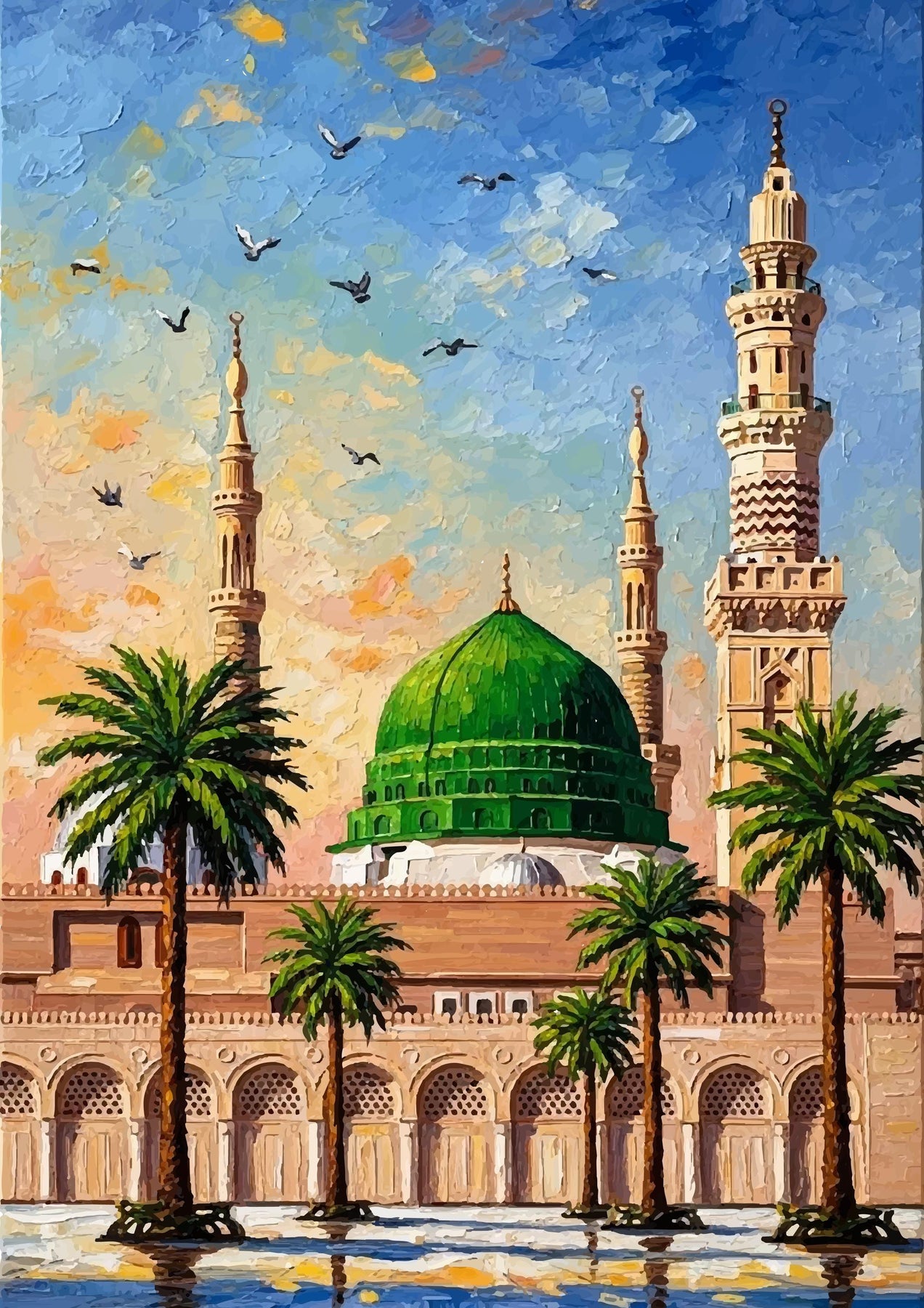Masjid an-Nabawi Wall Art: Green Dome Medina, Islamic Oil Painting