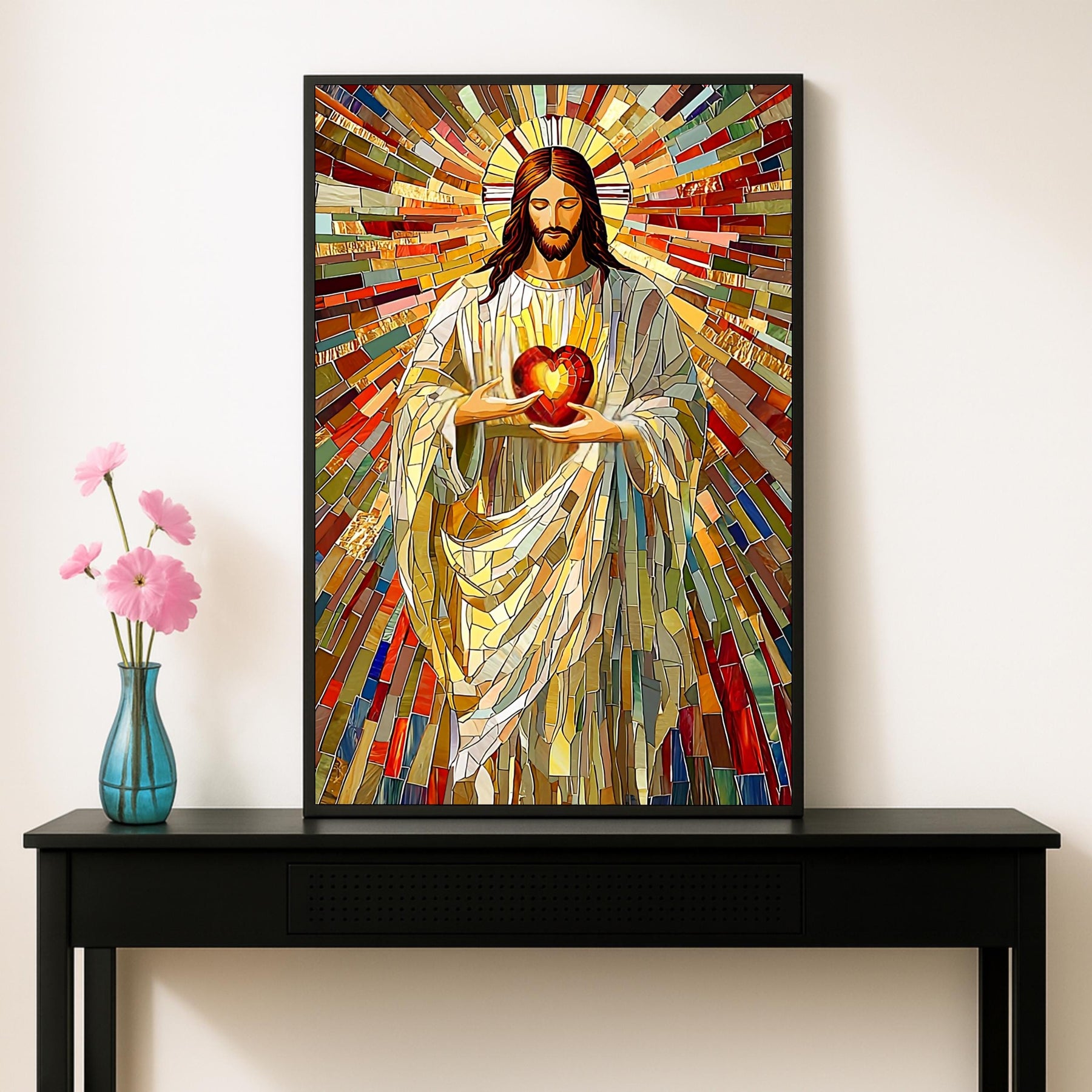 Sacred Heart of Jesus Mosaic Art — Stained Glass Catholic Decor