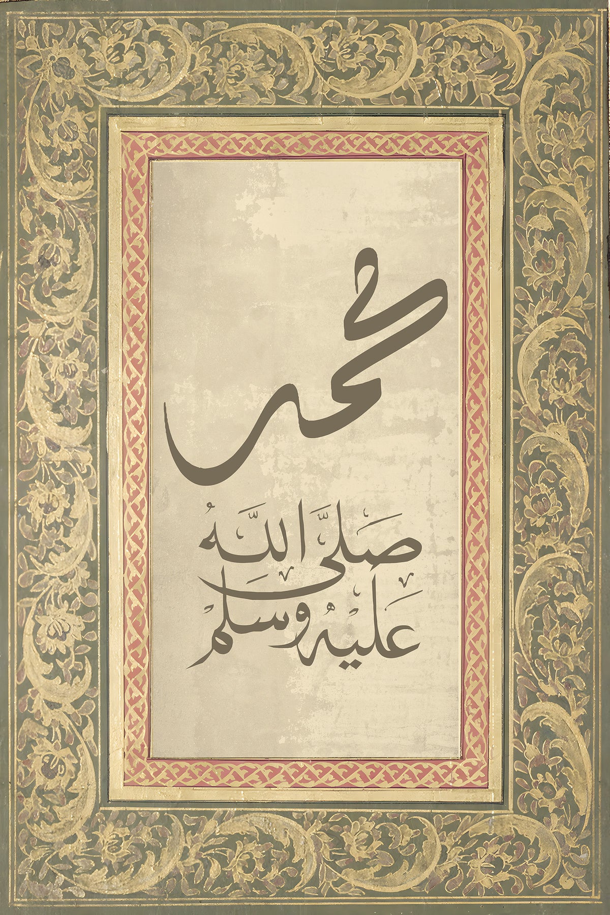 vintage-inspired Islamic art print featuring Allah and Muhammed