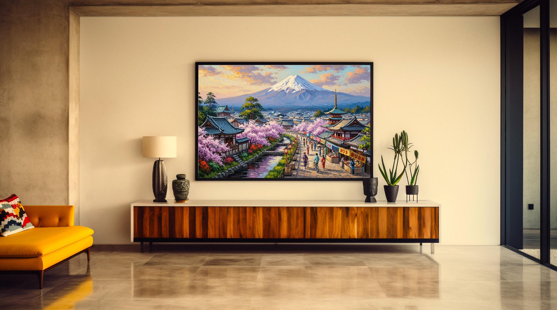 Discover Kyoto Mount Fuji Art, a premium wall piece featuring a textured oil-painting style that captures Japan’s iconic landscape. Printed on high-quality canvas with a refined finish, this artwork brings depth and atmosphere to any wall.