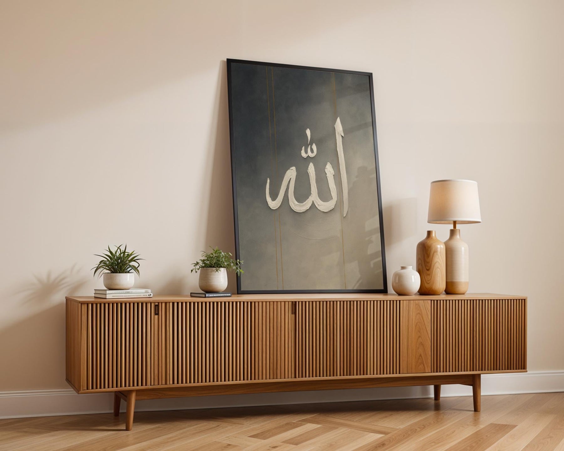 Minimal Islamic wall art displayed in a living room setting